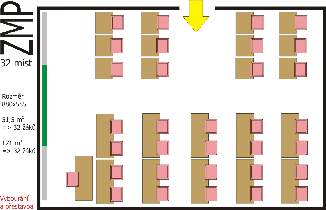 Další důležitou etapou úprav školy je adaptace bývalého bytu na učebnu zeměpisu (tzv. Cimra).